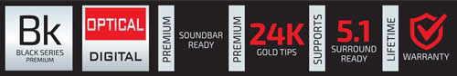 Providing a simple one cable connection, this Helios optical cable is a great way to get the best possible sound through an optical digital audio cable. Color-coded, easy-grip terminals simplify hook up.