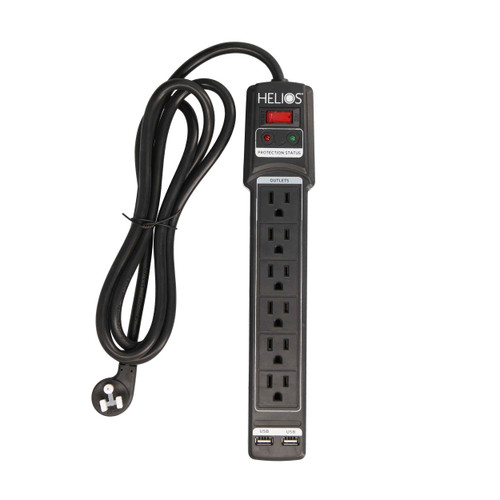 6-OUTLET 1080J SURGE PROTECTOR POWER STRIP WITH 2 USB 2.1A, RIGHT ANGLE PLUG, 6FT (BLACK) AS-HP-206U