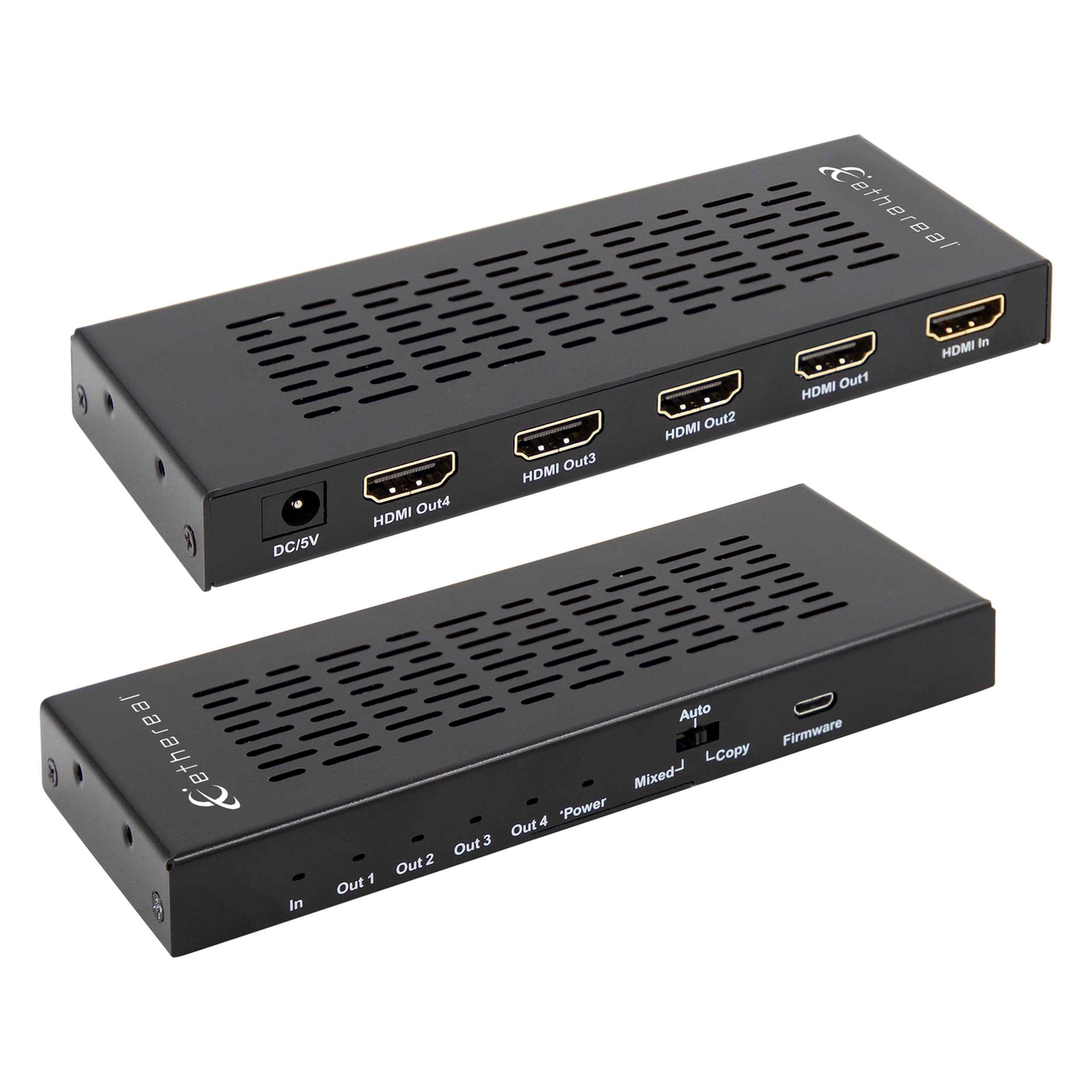 The CS-1X4HDMSPL5 with built-in scaling provides the ability to take any standard resolution and downscale it to match each of the connected displays (up to 4), simultaneously. For example, show 4K@60Hz content on a 4K display while also showing the same content scaled down on a 1080p display. Unlike traditional splitters, this built-in scaling allows legacy devices to work with newer higher resolution displays in the system, without automatically defaulting to the lowest resolution. Video quality on newer TVs is no longer sacrificed by having an older model in the mix.