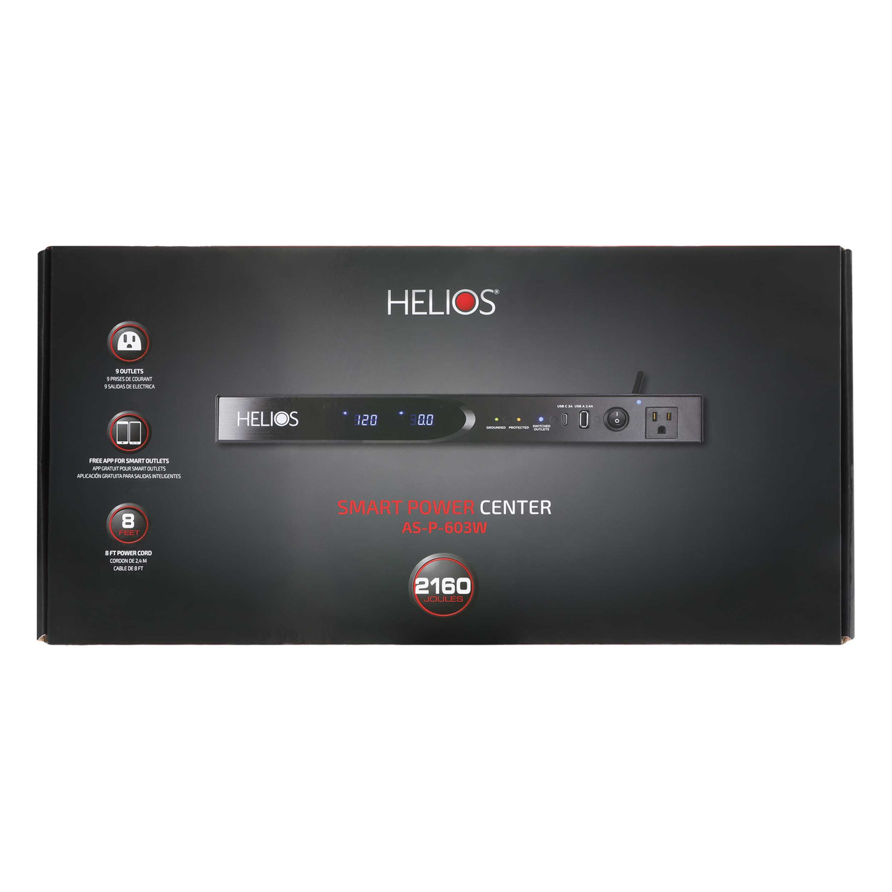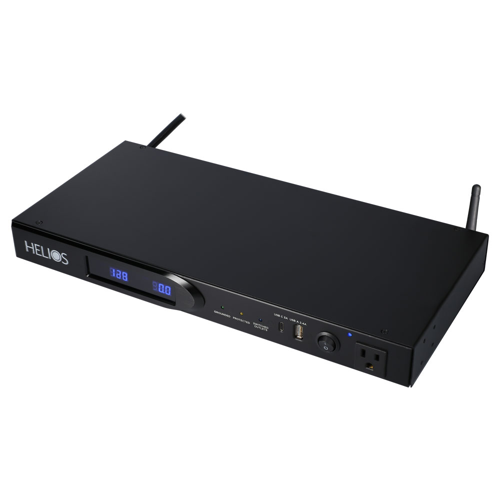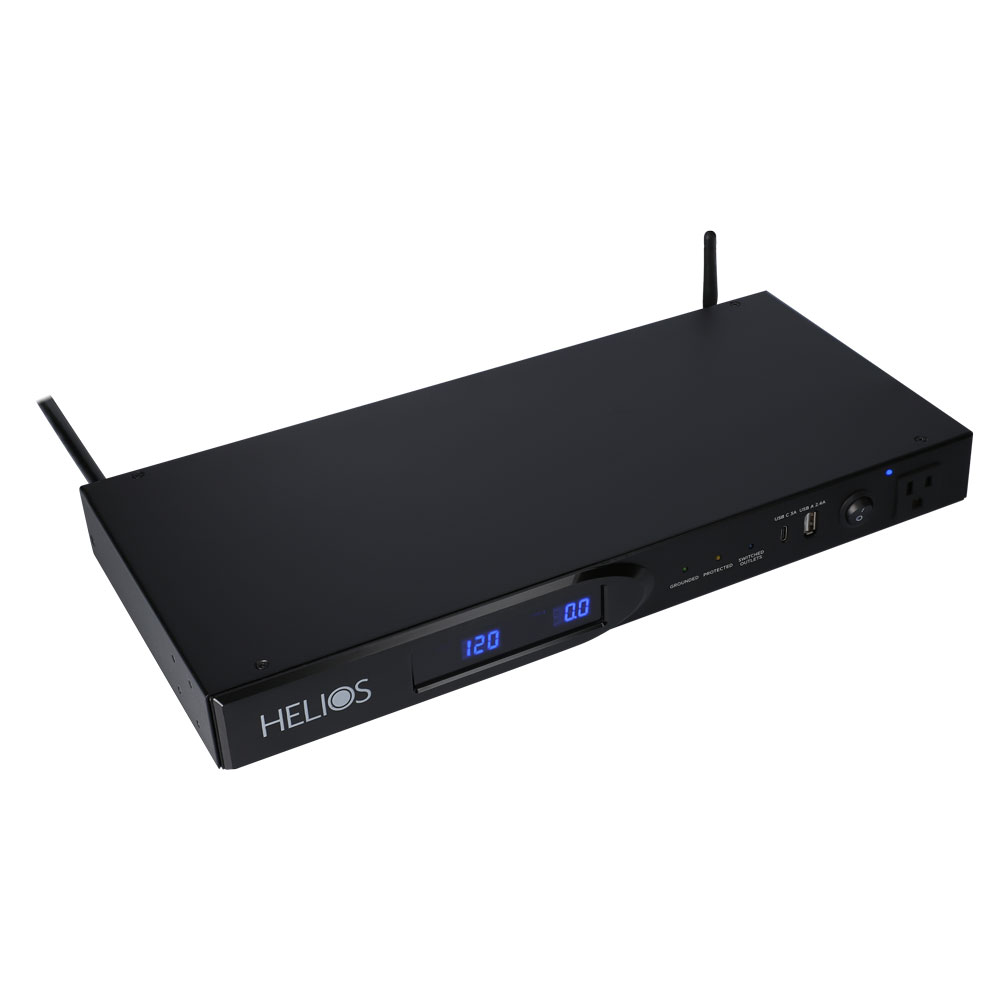 The Helios AS-P-603W power strip features a total of 9 AC outlets with 4 switched rear outlets, 1 easy-access always-on front outlet, 4 “smart” outlets controlled via the free mobile app, and 2 USB ports of USB A & USB C for portable device charging. This solution has overload protection and also protects equipment from a power surge of up to 2,160 joules. It has a 120volt/15A rating and 65dB EMI/RMI noise filtration to condition the power going to connected devices or lines. For cabling, it provides 2 pairs of coaxial connections and is rack-mountable. An LED display shows the voltage and a remote 12v DC trigger is included to control the switched outlets. This UL approved power strip has an 8ft cord, durable metal housing and comes with a 3-year limited warranty.